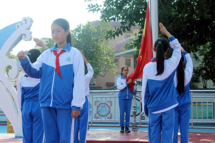 開(kāi)學(xué)典禮由三(2)中隊(duì)的羅心語(yǔ)同學(xué)主持,莊嚴(yán)的升旗儀式后,舉行了“新教師亮相”儀式,少先隊(duì)員們給本學(xué)期新進(jìn)校的崔洋副校長(zhǎng)、沈雪老師、蔡綿綿老師獻(xiàn)上了鮮花,新教師代表崔洋副校長(zhǎng)講話(huà),她倡導(dǎo)同學(xué)們“做一個(gè)心懷美好夢(mèng)想的小行家”,“做一名心疼父母的好孩子”。
