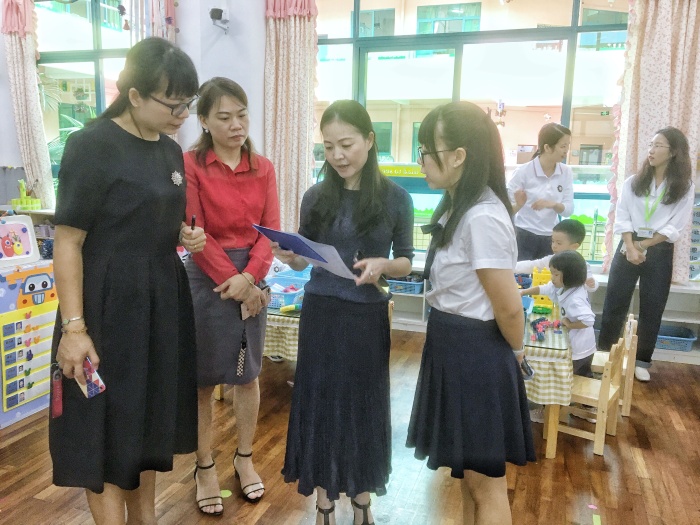本次年檢,區(qū)教育事務(wù)指導(dǎo)中心制定了詳細(xì)的工作方案,從時(shí)間、對(duì)象、內(nèi)容、方法上對(duì)今年的年檢工作作了具體的安排:由區(qū)教育事務(wù)指導(dǎo)中心幼教專干黃翠媛老師及區(qū)疾控中心負(fù)責(zé)人黃國賢醫(yī)生擔(dān)任年檢總指揮,檢查組成員由疾控中心醫(yī)生、等級(jí)幼兒園園長、骨干教師及幼兒園保健醫(yī)生等組成,共分6個(gè)組同時(shí)進(jìn)行檢查。檢查組按照2019年度《中山市幼兒園年檢手冊(cè)》、《中山市托兒所年檢手冊(cè)》各項(xiàng)指標(biāo)要求,對(duì)受檢托幼機(jī)構(gòu)自2019年9月以來的辦學(xué)情況進(jìn)行全面檢查,對(duì)各園所的辦園(所)條件、幼兒園(托兒所)管理、衛(wèi)生保健三大方面進(jìn)行細(xì)致的評(píng)估督導(dǎo),在園(所)半天的時(shí)間里,檢查組通過察看園所環(huán)境、室場設(shè)施,隨機(jī)觀察幼兒半天生活、查閱檔案資料、深入課堂聽課、與保教人員溝通等各種渠道收集信息,對(duì)幼兒園的年度辦學(xué)情況做出客觀的判斷,并記錄扣分依據(jù),填寫詳盡的定性評(píng)價(jià),最后通過反饋環(huán)節(jié)讓每一間受檢幼兒園明確今后努力的方向。