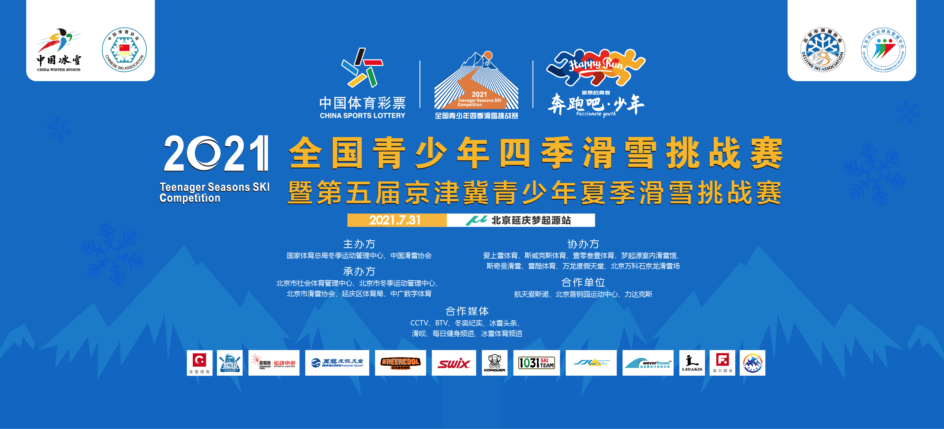協(xié)辦單位:愛上雪體育,斯威克斯體育,壹零叁壹體育,夢起源室內(nèi)滑雪館,斯奇曼滑雪,雪酷體育,萬龍度假天堂,北京萬科石京龍滑雪場