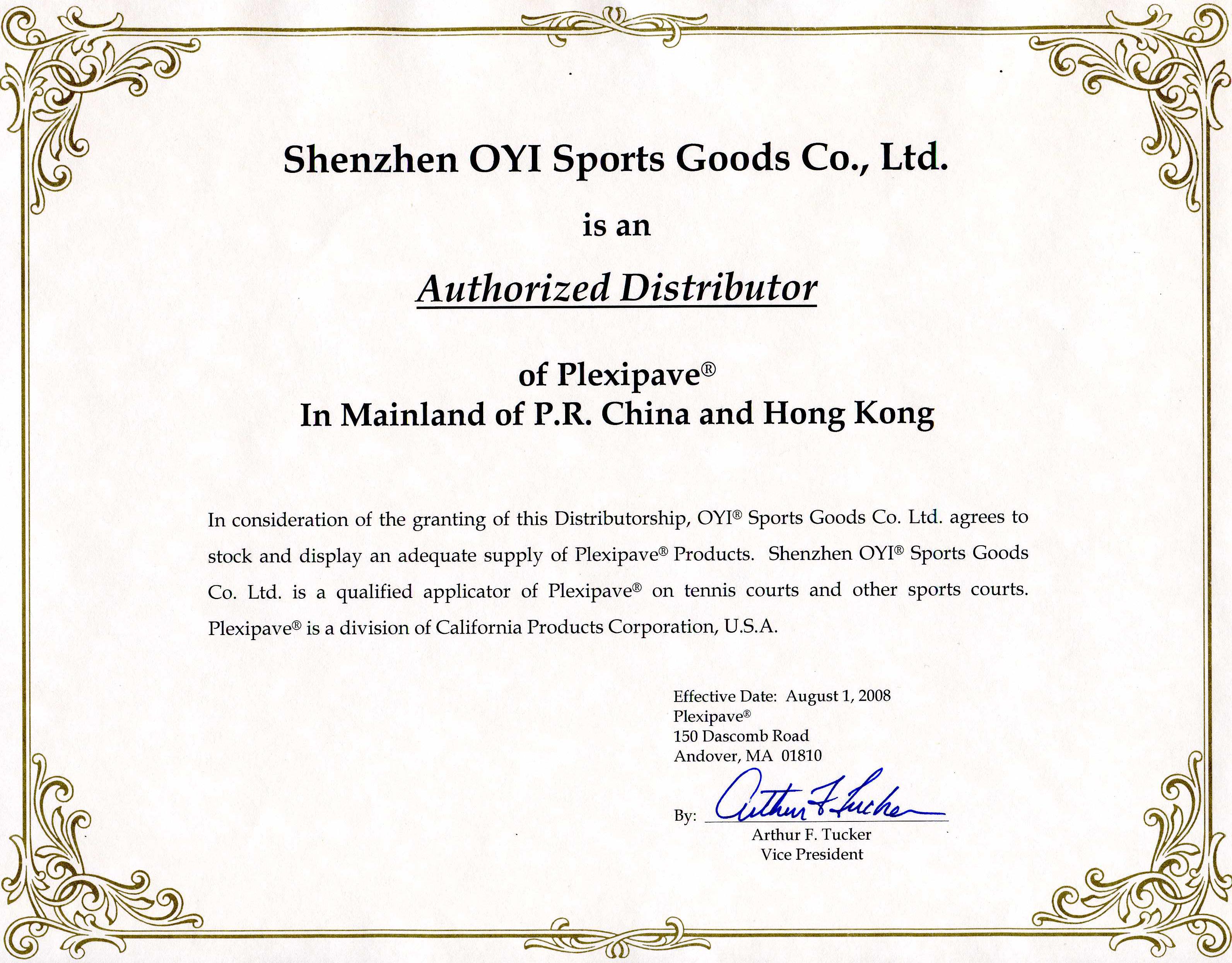 奧悅為Plexipave合格營(yíng)造商與受權(quán)經(jīng)銷商證書