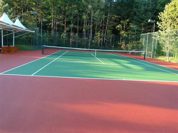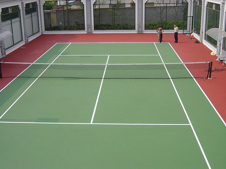 材料簡介:丙烯酸樹脂球場(彈性丙烯酸網(wǎng)球場,硬地丙烯酸網(wǎng)球場)適用于專業(yè)選手比賽和訓(xùn)練使用,由100%純丙烯酸乳液加入進(jìn)口色料及助劑制成,完全符合環(huán)保要求,具有較好的耐磨性能,防水、防曬、防滑、可鋪設(shè)于室內(nèi)外瀝青或水泥面上。可依照加砂及水的配比調(diào)整表面糙度。中級性能產(chǎn)品。