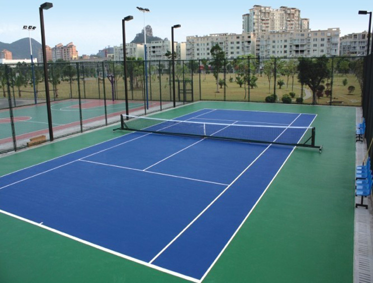 彈性丙烯酸材料簡介材料簡介:丙烯酸樹脂球場(彈性丙烯酸網(wǎng)球場,硬地丙烯酸網(wǎng)球場)適用于專業(yè)選手比賽和訓(xùn)練使用,由100%純丙烯酸乳液加入進(jìn)口色料及助劑制成,完全符合環(huán)保要求,具有較好的耐磨性能,防水、防曬、防滑、可鋪設(shè)于室內(nèi)外瀝青或水泥面上。可依照加砂及水的配比調(diào)整表面糙度。中級性能產(chǎn)品。產(chǎn)品特點(diǎn):原材料全部選用世界知名品牌,并采用先進(jìn)技術(shù)制成。具有良好的透氣性和適中的硬度。具有良好的耐水、耐候及耐磨性。多種顏色可供選擇。應(yīng)用范圍:室內(nèi)、外籃球場、網(wǎng)球場、羽毛球場等施工工序:打磨場地">