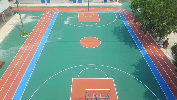 施工工序:打磨場地----清洗---補(bǔ)積水---切割伸縮縫---底涂---伸縮縫埋制---彈性層---找平層---面涂--劃線。